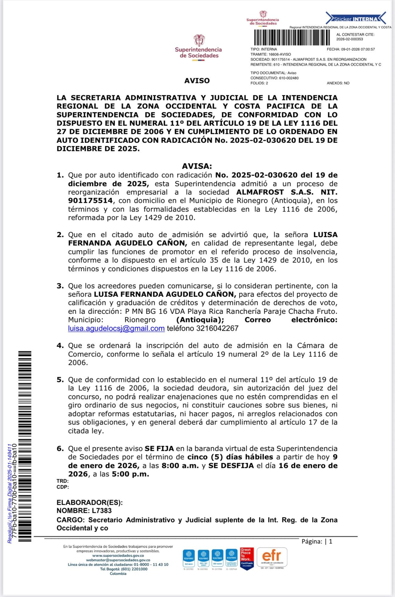 ALMAFROST S.A.S.